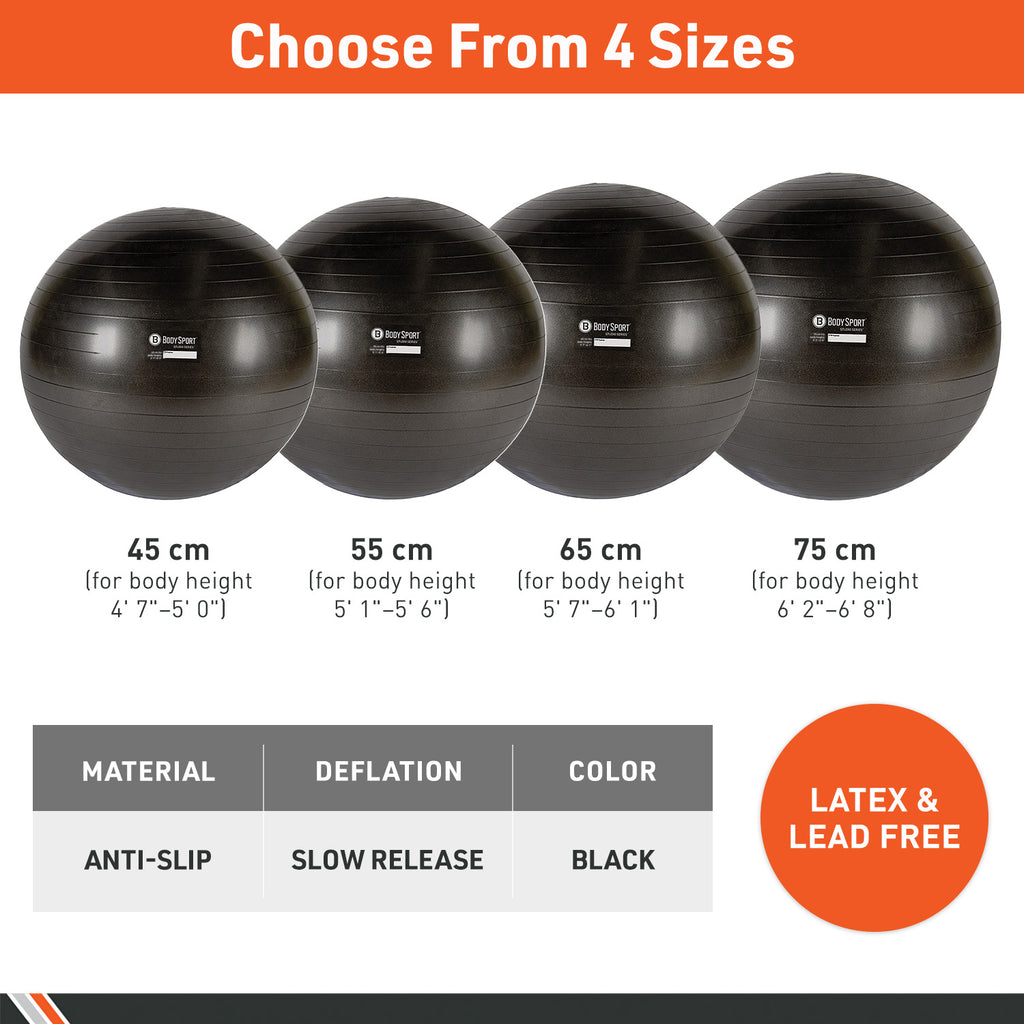 These exercise balls feature a slow air release function that allows the balls to deflate slower than other fitness balls.